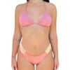 Top a triangolo con coppe estraibili e anello centrale dorato. Slip senza cuciture, con fascia elastica sui fianchi che si adatta perfettamente alla silhouette.