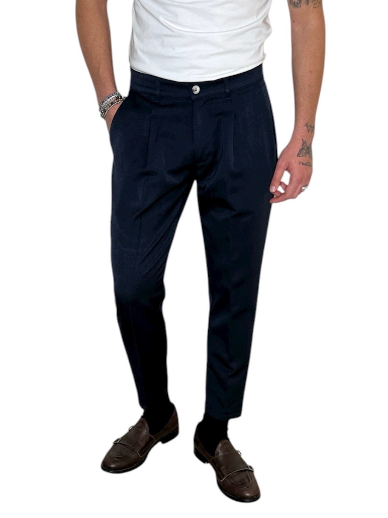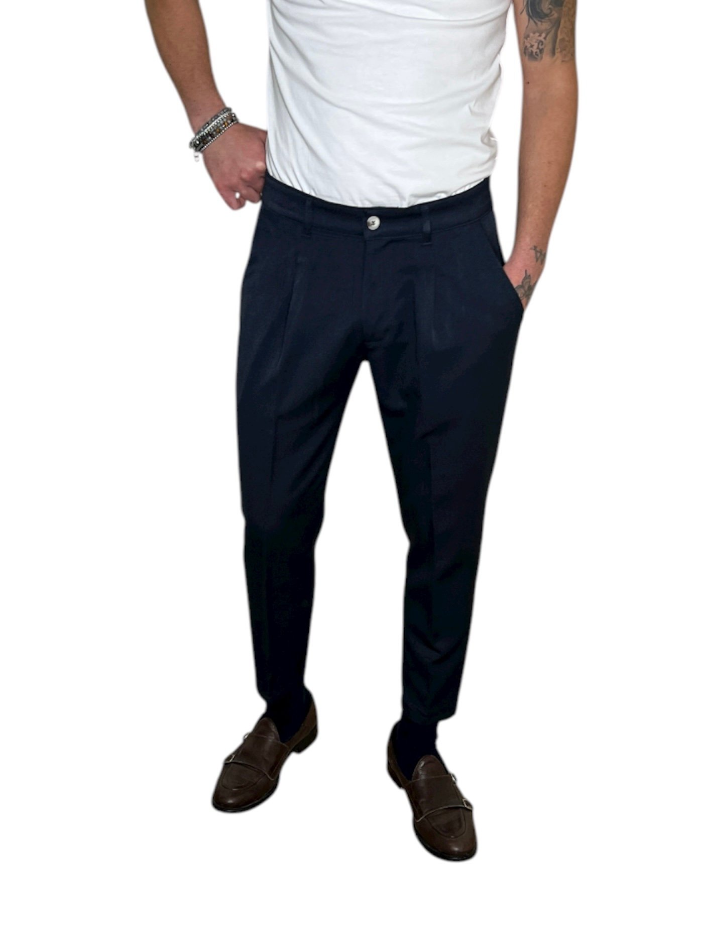 PANTALONE ELEGANTE CON PENCE BLU NOTTE